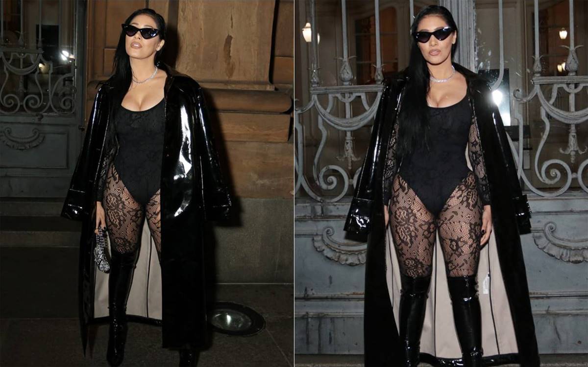Simaria Mendes marcou presença na abertura da São Paulo Fashion Week na noite desta segunda-feira (22). A sertaneja foi conferir o desfile do estilista João Pimenta e investiu em um look ousado. Ela usou um body preto e um macacão transparente feito com rendas.