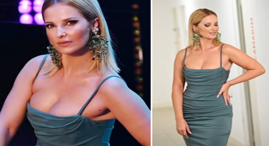 Para a terceira gala de "O Triângulo", optou por um vestido verde de alças e ajustado ao corpo, da marca House of CB.