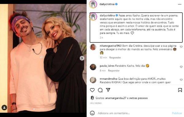 Cristina Ferreira deixou uma carinhosa mensagem dedicada a Kasha nas redes sociais. Hoje, 19 de março, o músico dos D.