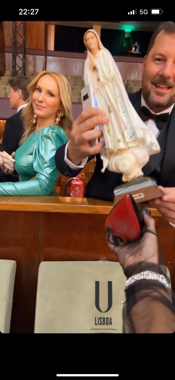 A apresentadora, no seu discurso motivacional, referiu que tinha encontrado, na manhã em que realizou as “Talks”, uma imagem de “Virgem Maria” dentro dos primeiros sapatos da marca Louboutin.
