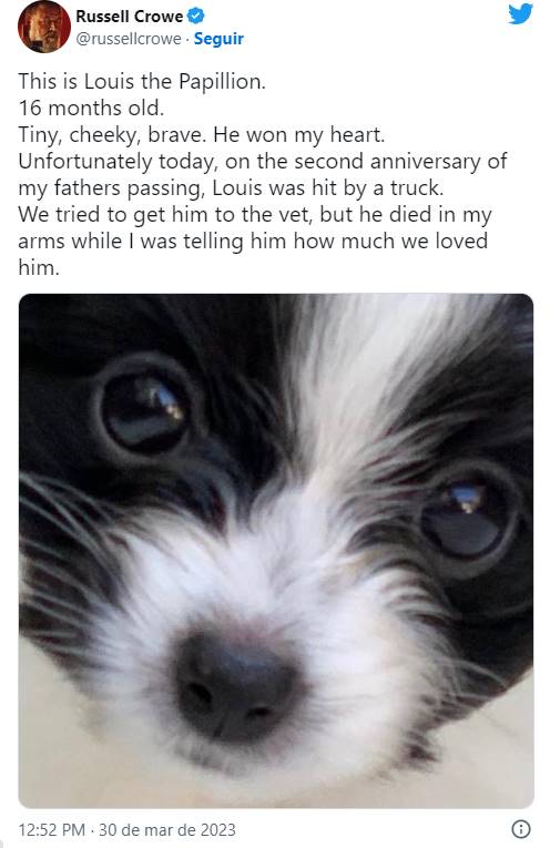 Russell Crowe viveu um momento muito difícil. O patudo Louis morreu nos braços do ator depois de ter sido atropelado por um camião.