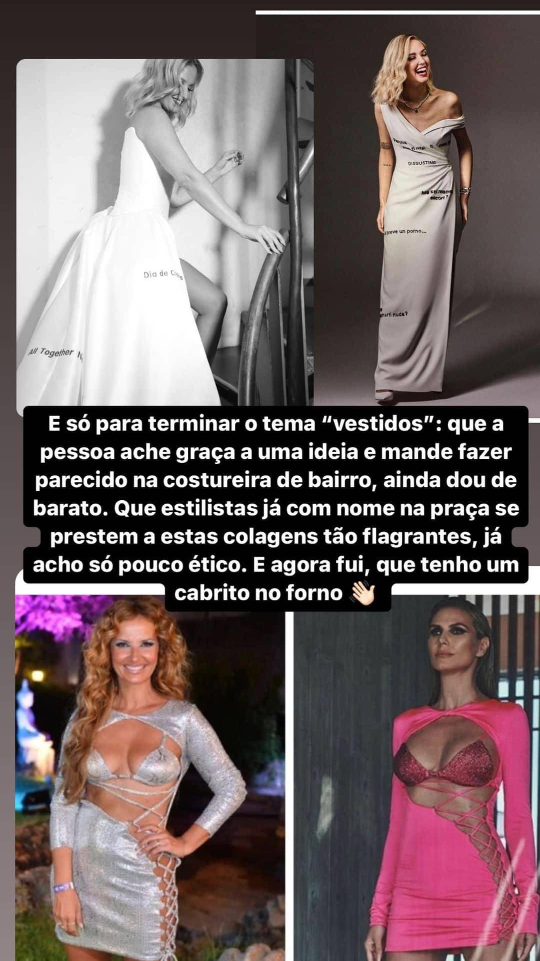 Que estilistas já com nome na praça se prestem a estas colagens tão flagrantes, já acho só pouco ético. E agora fui, que tenho um cabrito no forno”, escreveu nos Instastories.