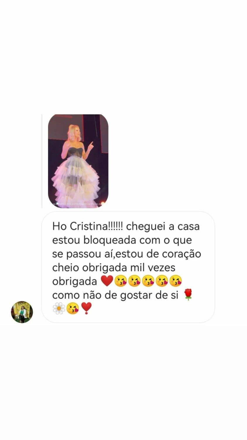 Cristina ainda compartilhou mensagens privadas de suas seguidoras que expressaram sua felicidade em participar do evento.
